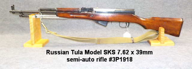 Russian Tula Model SKS 7.62 x 39mm semi-auto rifle #3P1918, Ruger PC carbine 9mm