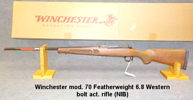 9 scope, Winchester mod. 70 Featherweight 6.8 Western bolt act. rifle (NIB),