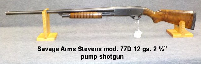 Stevens mod. 77D 12 ga. 2 ¾” pump shotgun, J. Stevens Arms mod. 335 12 ga.