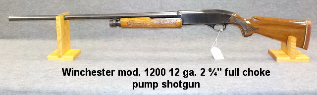 Winchester mod. 1200 12 ga. 2 ¾” full choke pump shotgun, Remington mod. 7600