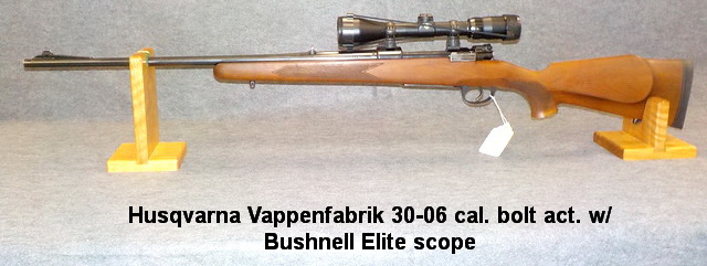 bolt act. rifle, Husqvarna Vappenfabrik 30-06 cal. bolt act. w/ Bushnell Elite
