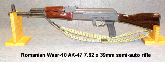 w/ bayonet & clip, Romanian Wasr-10 AK-47 7.62 x 39mm semi-auto rifle,