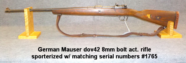8mm bolt act. rifle sporterized w/ matching serial numbers #1765, US Springfield