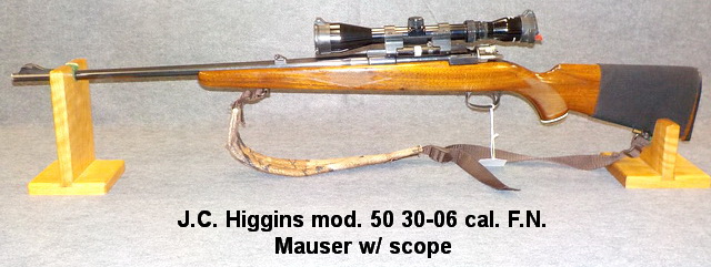 act. rifle, J.C. Higgins mod. 50 30-06 cal. F.N. Mauser w/ scope, Ruger 10/22 22