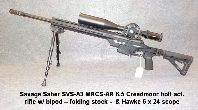 semi-auto rifle #CDD05172, Savage Saber SVS-A3 MRCS-AR 6.5 Creedmoor bolt act.
