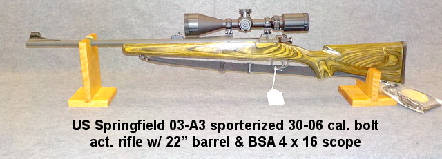 03-A3 sporterized 30-06 cal. bolt act. rifle w/ 22” barrel & BSA 4 x 16 scope,
