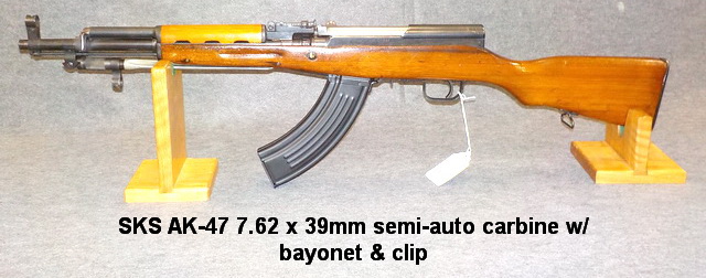 7.62 x 39mm semi-auto rifle w/ bayonet, SKS AK-47 7.62 x 39mm semi-auto carbine