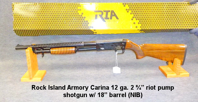 Luger semi-auto rifle (NIB), Rock Island Armory Carina 12 ga. 2 ¾” riot pump
