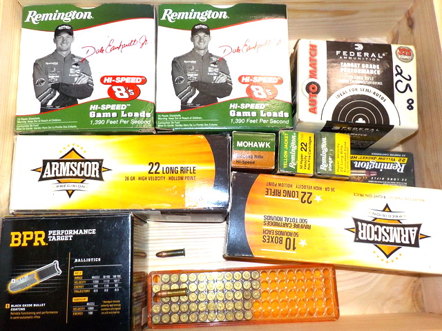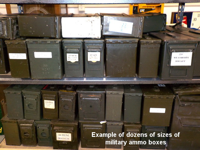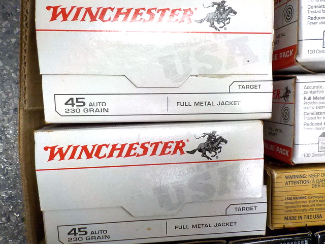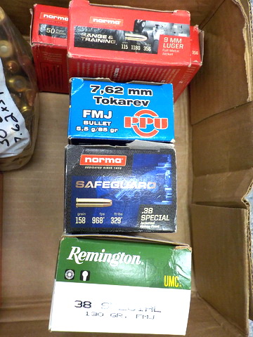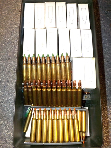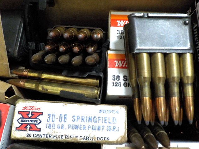 45mm NATO, 38 Spl., 9mm Para, M1 Garand enblocs, 7.62 x 39mm bandoliers, CCI