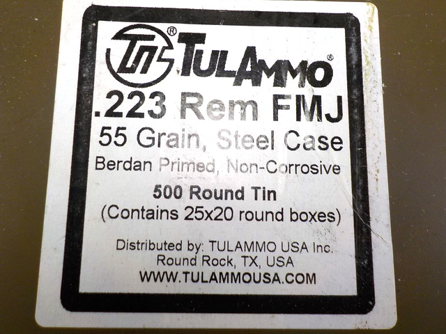 Quiet 22s, Wolf 9mm Luger, (2) (240) rds. Spam Cans 30 Ball M2, TulAmmo 223 FMJ