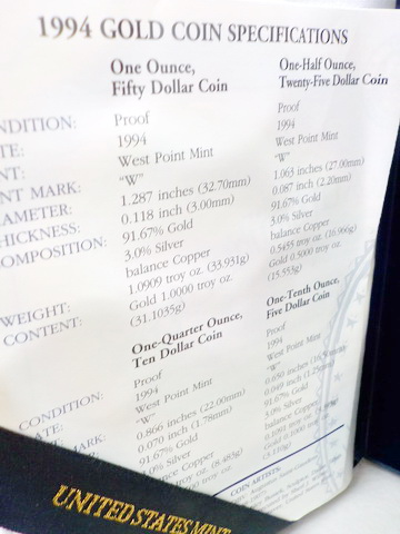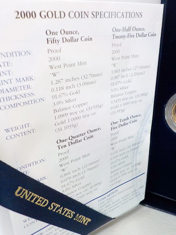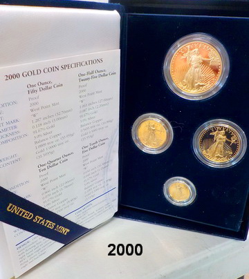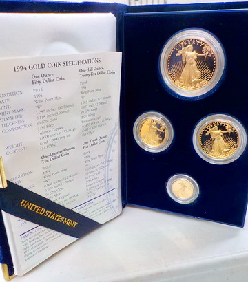 1994 American Eagle 4 coin Gold bullion proof set w/ paperwork (no box), 2000