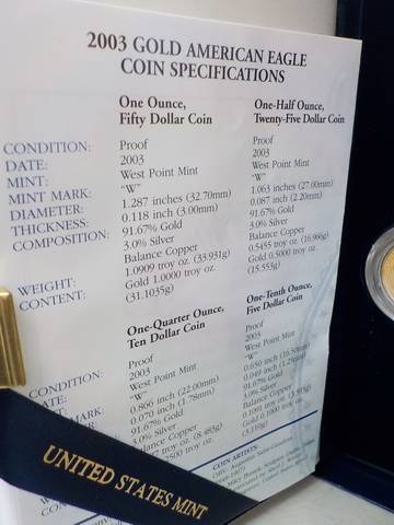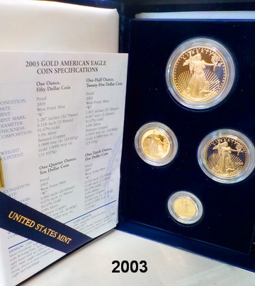 American Eagle 4 coin Gold bullion proof set w/ paperwork & box, 2003 American