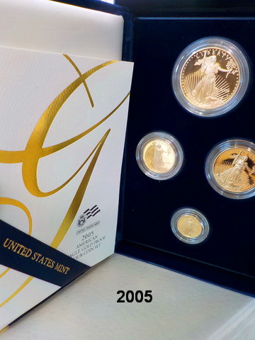 Eagle 4 coin Gold bullion proof set w/ paperwork & box, 2005 American Eagle 4
