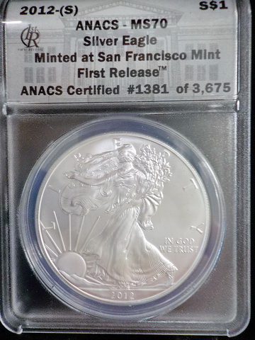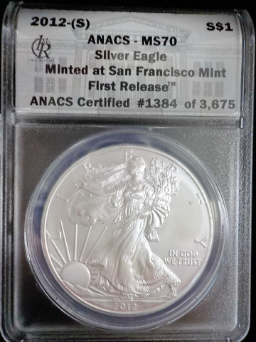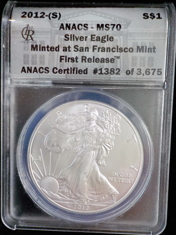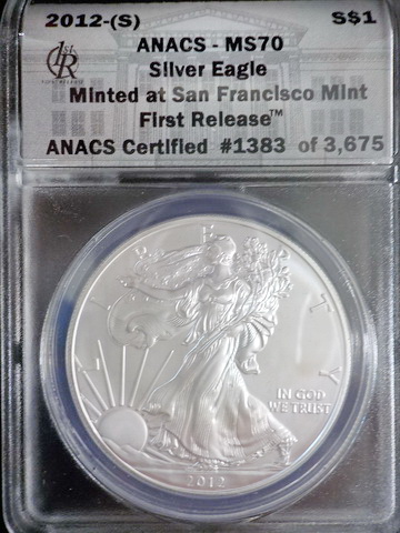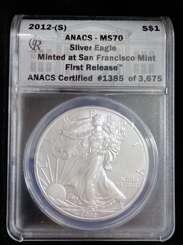 graded MS 70, 2012S American Eagle first release ANACS #1384 of #3675 slabbed &