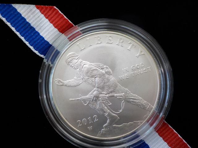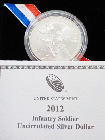 slabbed & graded MS 70, 2012 US Mint Infantry Solider uncir. silver dollar,