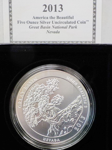 (5) 2013 5 ounce America the Beautiful silver uncirculated coins – Great Basin