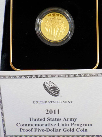 American Eagle $25 ½ oz. Gold proof coin in box w/ paperwork, 2011 US Army $5