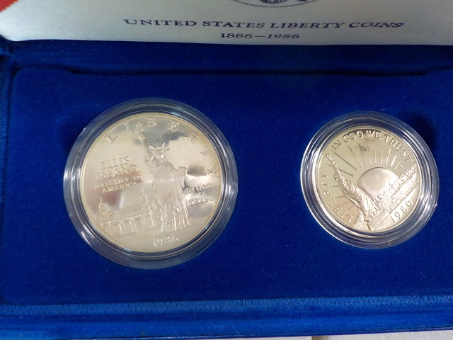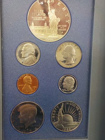 proof silver dollar, 1986 Ellis Island silver dollar & half dollar, 2015 March
