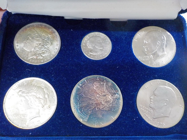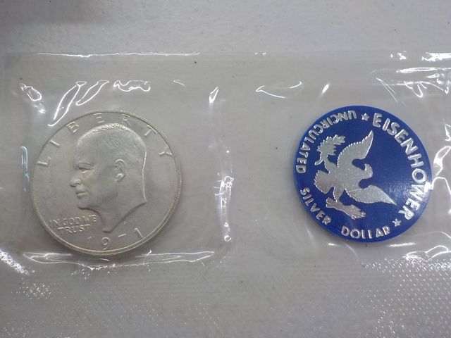 dollars, 1974 Eisenhower uncir. silver dollar, (4) 2002 US Mint silver proof