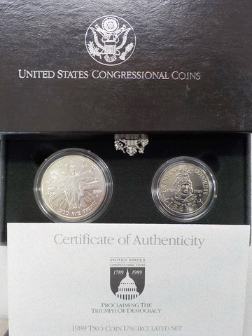 Silver dollar, (8) 1989 US Congressional coin sets w/ silver dollar & half