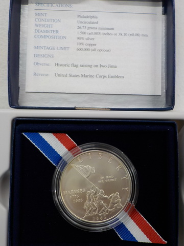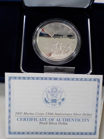 silver dollar, 2005 Marine Corp 230th Anniv. uncir. Silver dollar,