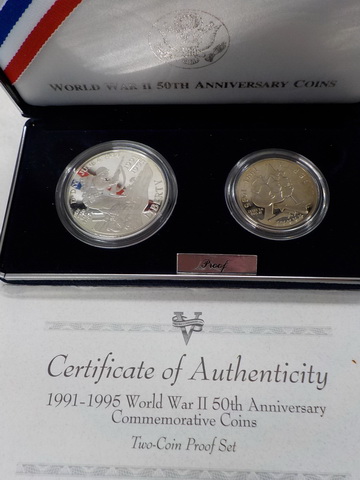 WWII 50th Anniv. Proof silver dollar & clad ½ dollar, 2002 Olympic