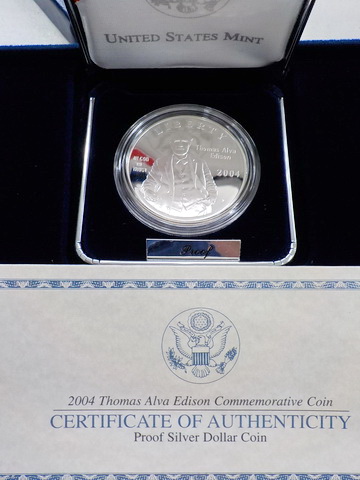 Thomas Edison proof silver dollars, 2004 Thomas Edison uncir. silver dollar,
