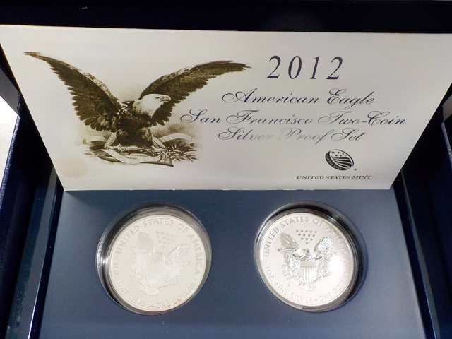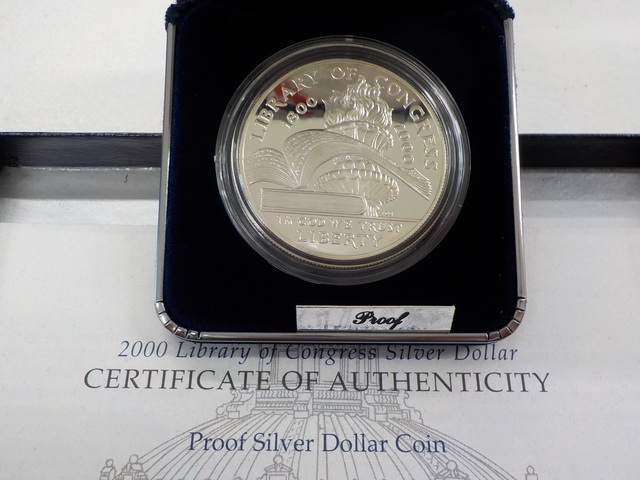 2000 Library of Congress proof silver dollar, 2012 American Eagle 1 oz. San