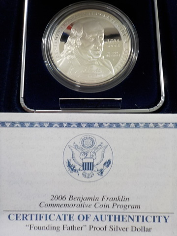 Capital Vis. Center proof silver dollars, (3) 2006 Ben Franklin Founding