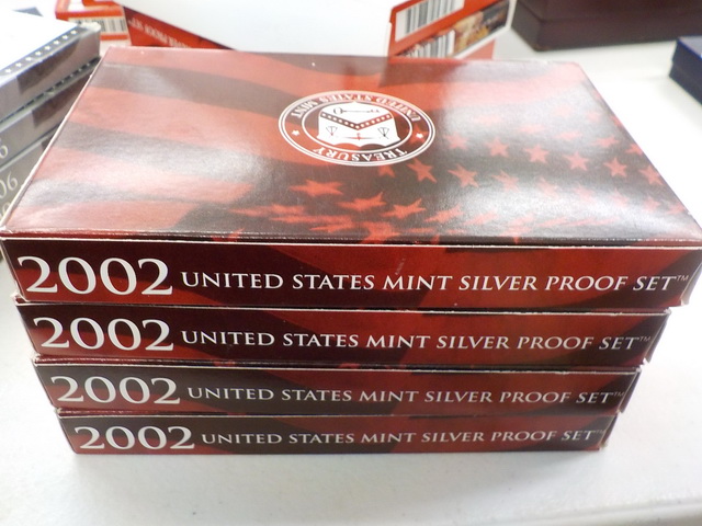 sets, (6) 2003 US Mint silver proof sets, (8) 2004 US Mint silver proof sets,