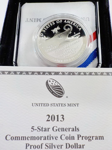 5 Star Generals proof silver dollar, (2) 2013 5 Star Generals uncir. silver
