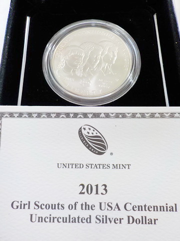 dollars, 2008 Bald Eagle proof silver dollar, 2013 Girl Scouts of the USA uncir.