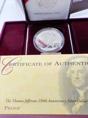 (2) 1993 Thomas Jefferson 250th Anniv. Proof silver dollars, 1996 US