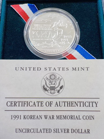 Korean War Memorial uncir. silver dollar, 2003S Clad State quarters proof set PF