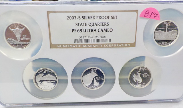 sets, (2) 2007 US Mint silver proof sets, (2) 2008 US Mint silver proof sets,