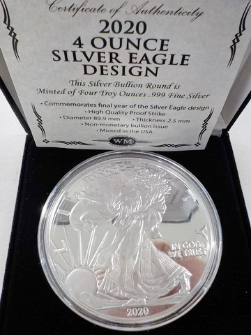 Eagle Giant ½ pound .999 pure silver round, 2020 American Eagle 4 oz. .999 fine