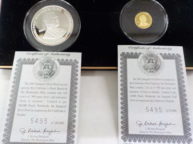 dollar and 1/10th oz. pure gold coin for Geo. Bush 2001 Inauguration.....SILVER: