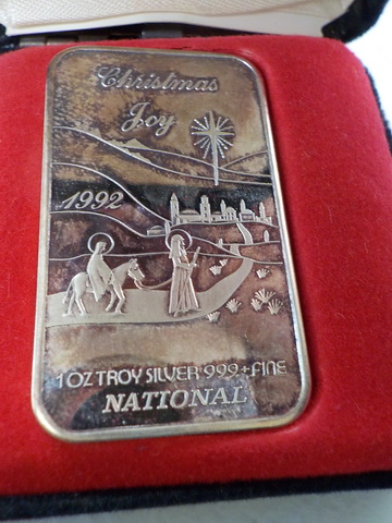 1 oz. Medallions, 1992 Christmas 1 Troy oz. silver bar, 1772 & 1826 one of