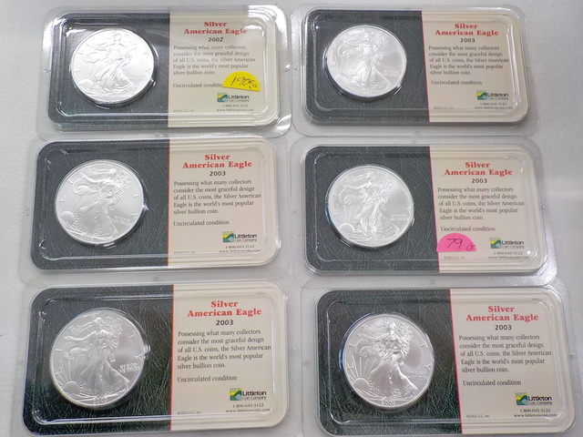 holder, (5) 2003 American Eagle silver $1 in uncir. holders, 2000 American Eagle
