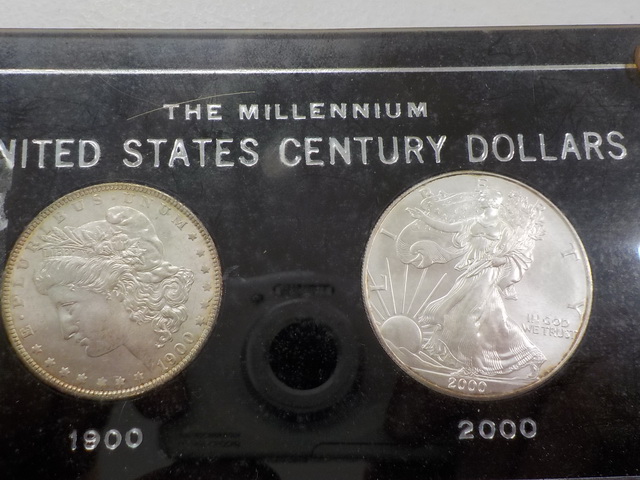 1902O Morgan & 2002 American Eagle silver dollar, The Millennium US Century