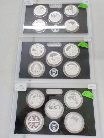quarter set, (2) 2019 US Mint State quarter set, 2011 US Mint silver proof set,