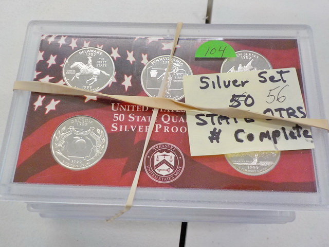(6) uncir. Ike proof dollars, Complete (56) silver State quarters set from