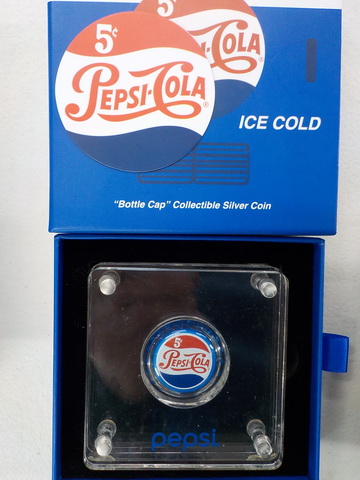Pepsi Cola 6 grams .999 fine silver proof bottle cap, 4 decades set of uncir.