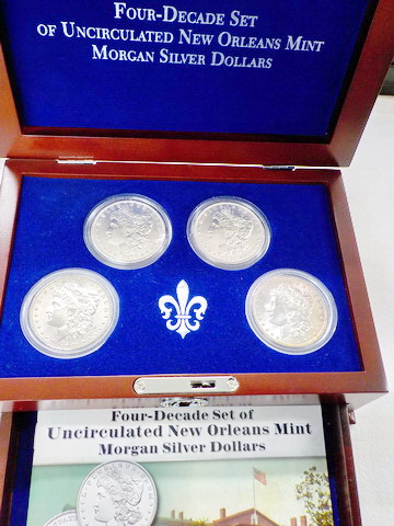 New Orleans Mint US silver dollars 1879O, 1883O, 1889O, & 1902O, 1974 Republic