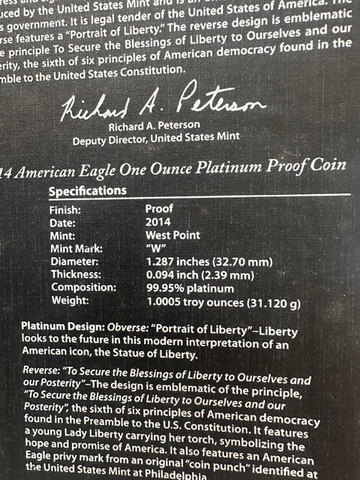 American Eagle 1 oz. proof platinum coin, (4) complete sets of 35 Franklin