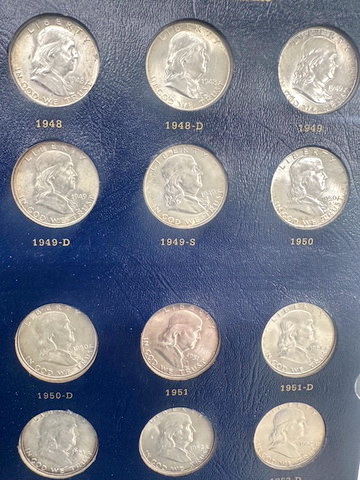 Silver halves 1948-1963D, (1) set of 35 Franklin silver uncir halves 1948-1963D,