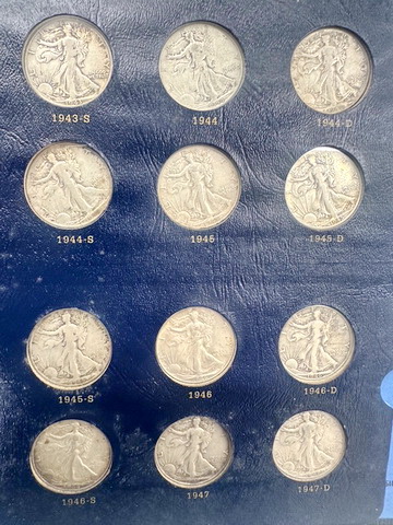 (2) Complete sets of 65 Walking Liberty silver halves 1916-1947D, Book of 80