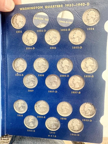 Washington quarters (missing 1932D, 1932S & 1941D), Book of 48 Roosevelt silver