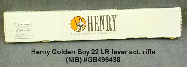 (NIB), Henry Golden Boy 22 LR lever act. rifle (NIB) #GB495438, Ruger M77 338