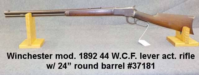 W.C.F. lever act. rifle w/ 24” round barrel #37181, Winchester mod. 1892 44